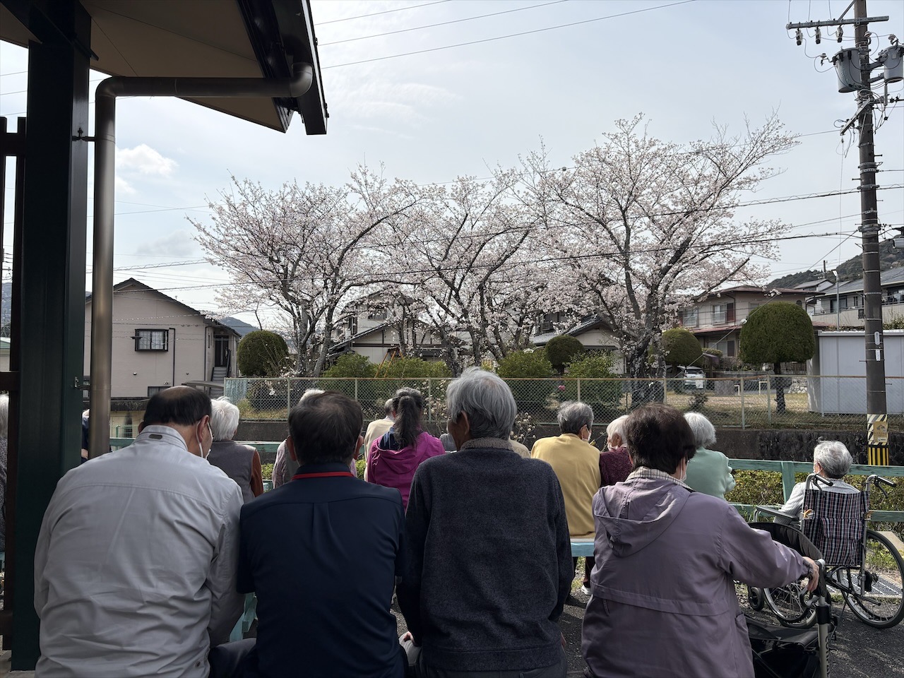 喜ら里前の公園の桜が満開に咲きました。天気も良く皆さんと楽しくお話ししながらお花見をしました。